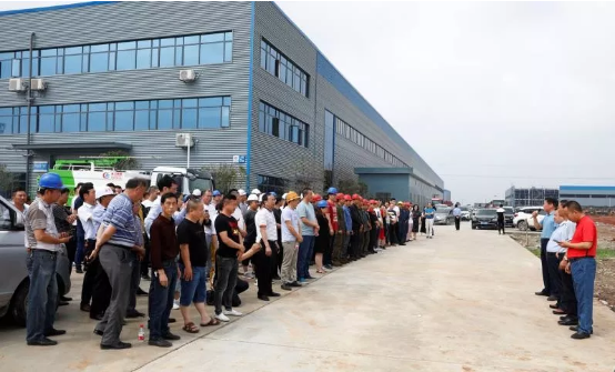 程力汽車集團總經理程阿羅(左二)、常務副總經理程國強(右二)、黨委書記何儒安(左一)、副總經理黃尚財(右一)先后分別發言表示祝賀。 程力商用車工業園一、二期占地面積1500畝,業已成為隨州市產業新城嶄新的地標性建筑,也將成為世界采購全球賣的專汽生產銷售集散地。