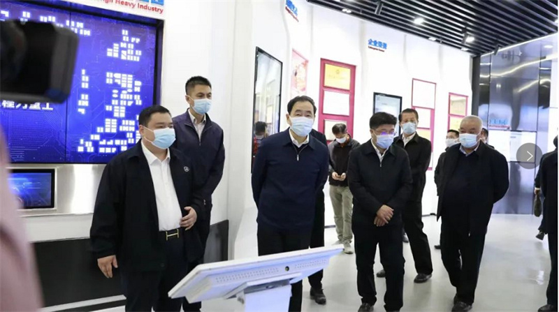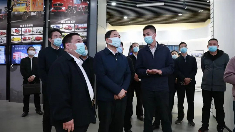 右上圖:湖北省副省長(zhǎng)趙海山(左二)、隨州市政府副市長(zhǎng)黃繼軍(左三)與程力汽車集團(tuán)董事長(zhǎng)程阿羅(左一)等負(fù)責(zé)人參觀程力專汽5G數(shù)字云展廳。 程力集團(tuán)高質(zhì)量發(fā)展的重大舉措引起了湖北省領(lǐng)導(dǎo)的高度重視,近日,趙海山副省長(zhǎng)一行領(lǐng)導(dǎo),在隨州市副市長(zhǎng)黃繼軍、曾都區(qū)區(qū)委姜晧,以及隨州市、曾都區(qū)政府職能部門(mén)負(fù)責(zé)人的陪同下,赴程力汽車集團(tuán)進(jìn)行專題調(diào)研,他首先參觀了程力汽車集團(tuán)5G數(shù)字云展廳,對(duì)程力集團(tuán)跨越式發(fā)展與對(duì)地方經(jīng)濟(jì)建設(shè)的貢獻(xiàn),表示了充分肯定;鼓勵(lì)企業(yè)以新技術(shù)、新材料、新工藝為重要抓手,以研發(fā)生產(chǎn)氫燃料動(dòng)力整車和新能源商用車暨應(yīng)急裝備產(chǎn)品轉(zhuǎn)型升級(jí)為突破口,一心一意謀發(fā)展,堅(jiān)定不移地走科技創(chuàng)新和綠色環(huán)保可持續(xù)發(fā)展之路。