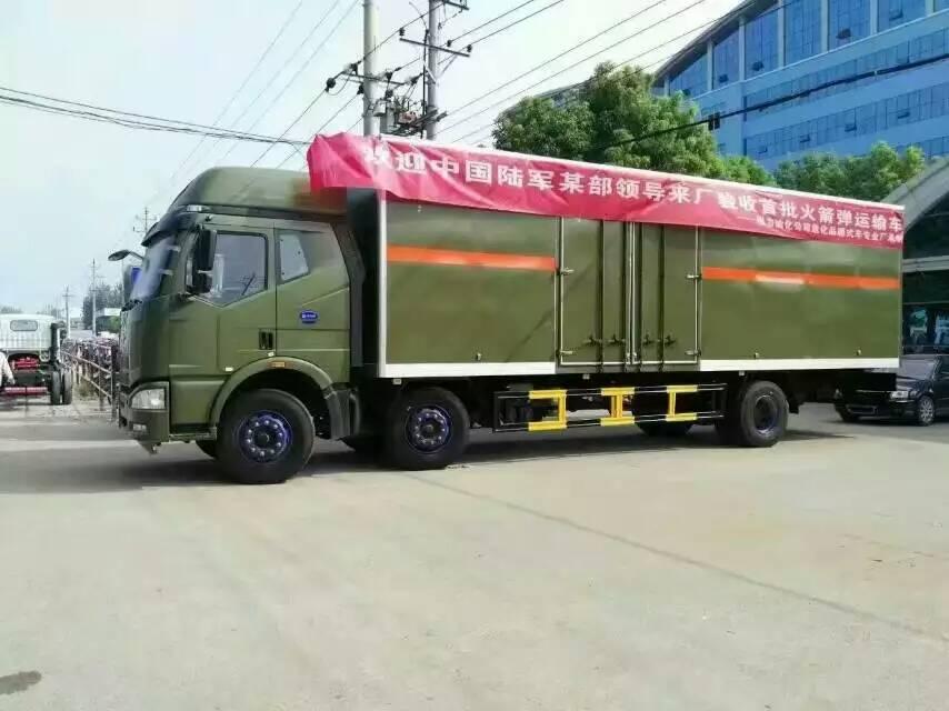 湖北程力危化品廂式車廠順利交付了首批9.6米火箭彈運(yùn)輸車輛