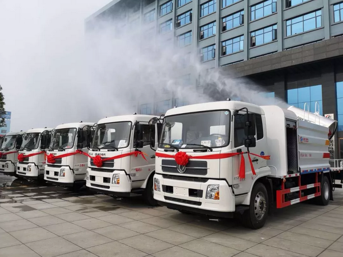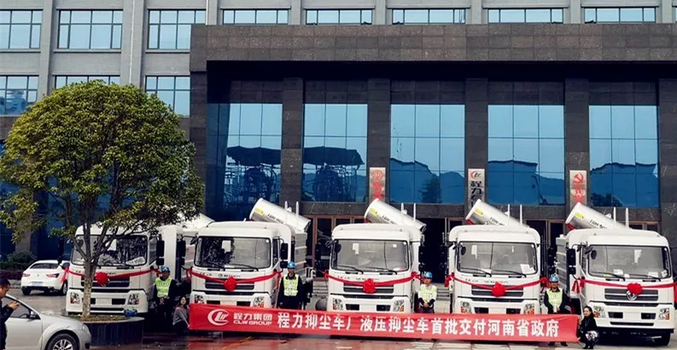 程力一體化液壓多用途智能抑塵車受到市場熱捧,河南省政府采購湖北程力一體化液壓多用途智能抑塵車首批交付 壯觀場面: