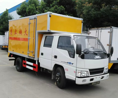 1、爆破器材運輸車底盤的型號可分為:東風、江鈴、江淮、奧鈴、時代、歐曼、慶鈴、解放等。驅動形式可分為:雙驅動和四驅動,按額定載質量有0.5噸—9.9噸(國防科工委要求最大上戶噸位不超過10噸)。 2、廂體分為兩部分:A:運輸炸藥;B:運輸雷管(抗暴容器);C:炸藥,雷管同時運輸(廂體必須隔倉,分倉運輸,加裝抗爆容器)。廂體為雙層金屬骨架結構,外部為冷扎鋼板,內壁采用鋁合金板蒙面,夾層為隔熱阻燃材料填充。設置對開門,如需安裝抗暴容器則增開側門,側壁設有防雨功能自然通風窗口,以使廂內外空氣流動,廂體內部做防靜電處理,廂體底部與廂內前部鋪有阻燃導靜電膠板,并與底盤等電位連接,通過車輛后端的導靜電裝置與大地相連,可防止靜電火花的產生和車輛靜電及時釋放,提高爆破器材運輸車的安全性。廂體內部前面和側面裝有固定拉環,與捆綁帶使用捆綁貨物以避免移動,保證安全。 3、 感煙報警器:是感測車廂內火情的專用裝置,安裝在車廂內頂部,并與駕駛室內報警裝置連接,當有火情煙霧出現,在駕駛室進行蜂鳴報警通知駕駛員,保證及時消除險情。 4、防盜報警器:為了保證安全,在車廂后方和側面開設有門,在各門器框上方安裝有門磁開關報警器(根據用戶要求選裝防盜監視器。行車記錄儀等)當廂門被打開時,駕駛室內的蜂鳴器發出報警聲音,不使用時可將駕駛室內的控制開關關閉?杀WC在行駛過程中,整車始終處于受控狀態。 5、整車發動機排氣裝置采用前置式,并安裝有排氣火花熄滅器(防火罩),防止熱源對爆炸物產生不良影響。 6、底盤上裝有兩條拖地導靜電膠帶,廂體外側安裝示廓標記燈以及手提滅火器等安全裝置。 7、車身顏色為黃色,并有“嚴禁煙火”和“爆”字樣,貼有反光標識。 |