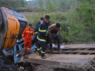 | 為了節約成本,隨州市一挖機老板私自在修理廠改裝一輛即將報廢的東風汽車。花上三萬多元的成本改成一個簡單的平板運輸車。由于改裝不符合技術標準,改好使用拖車運載挖掘機的貨車由于剎車失靈直接沖進水溝,貨車司機被困,情況十分緊急。特勤中隊聞警出動,急速趕往現場實施救援。 消防官兵到達現場后,發現一輛貨車車頭直接扎入溝中,在貨車上的挖掘機側翻在一旁,當地派出所及120急救人員已經趕到了現場。見此情形,消防官兵迅速展開營救,但由于貨車狠狠的撞在田埂上,駕駛室已經嚴重變形,消防官兵利用液壓剪擴鉗、液壓撐頂器等破拆工具均未能使駕駛室有效擴張,而且挖掘機隨時有壓下來的危險。于是,中隊指揮員立即協調公安部門,將附近的一輛挖掘機借調過來,配合消防官兵實施營救。 挖掘機到位后,指揮員立即下令挖掘機將貨車車身往后牽引,使車頭留有救援空間供消防官兵救援。命令下達后,救援人員各司其職,迅速的投入到戰斗中去。 19時05分,通過消防官兵1個多小時的緊張救援,貨車司機被成功救出,但由于撞擊嚴重,被困時間過長,醫 |