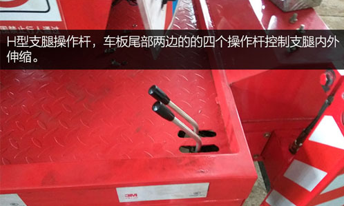 H型支腿操作桿,車板尾部?jī)蛇叺牡乃膫(gè)操作桿控制支腿內(nèi)外伸縮。