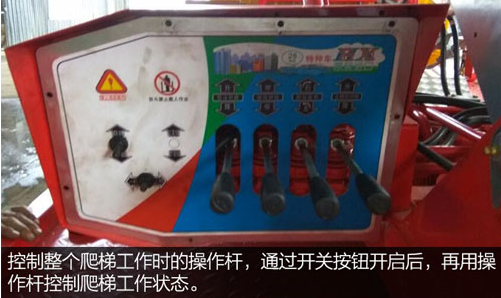 控制整個(gè)爬梯工作時(shí)的操作桿,通過(guò)開(kāi)關(guān)按鈕開(kāi)啟后,再用操作桿控制爬梯工作狀態(tài)。