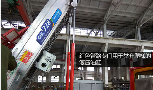 紅色管路專門(mén)用于舉升爬梯的液壓油缸