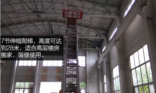 7節(jié)伸縮爬梯,高度可達(dá)到28米,適合高層樓房搬家、裝修使用。爬梯頂部安裝滑輪,適合貼墻升高時(shí)使用。云梯采用韓國(guó)進(jìn)口技術(shù),部分部件采用韓國(guó)原廠整裝進(jìn)口!包括液壓系統(tǒng),油路管件都是韓國(guó)原廠提供。