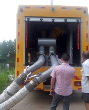 3、發(fā)電機組 發(fā)電機組功率選配,120KW,額定頻率50HZ,額電壓230/400V,康明斯發(fā)動機。調(diào)速方式:電子調(diào)速。啟動電瓶,電瓶總閘。 4、超輕型高速不銹鋼潛水泵 配4臺便攜式超輕型高速不銹鋼高頻率防腐蝕潛水泵,總流量可達1600立方每小時,單臺水泵功率為22KW,揚程為8M,單臺水泵配直徑為200MM消防式水管2根,每根長度為25米。 5、接地裝置 接地樁和接地電纜線,連接車箱內(nèi)專設(shè)的接地樁頭,連接方便,在機組工作時,接地線連接,保護作業(yè)安全。機電設(shè)備有嚴密的防漏電保護措施。在作業(yè)中,整車接地線,采用低壓接地線,配備可拆。卸式接地針,直徑不小于10mm。 6、控制系統(tǒng) 采用智能控制系統(tǒng),集中控制,中文界面,具有自動障礙保護功能,選用優(yōu)質(zhì)電器元件,性能穩(wěn)定,安全可靠。 7、抽水管 水泵進水口為一分兩個八寸,抽水管采用八寸美國進口透明水管,質(zhì)量輕,拿取方便,配3.5米長水管4根。接頭采用東方式快速接頭,使用方便,密封效果好;每個進水口配置鴨嘴式接頭,實現(xiàn)低水位抽吸作業(yè)。各進水口配90°彎頭。 8、排水管 水泵出水口一分四個5寸,每個出水口66米出水軟管(33m/卷,),軟管為快速接頭連接,操作方便,并在接頭處有防松保險裝置,安全可靠。水管直徑125CM水管材質(zhì)為雙面PVC,耐磨,耐壓10kg,快速接頭為凸輪接頭。 9、箱體 廂體外部鋼材為優(yōu)質(zhì)冷軋鋼板,內(nèi)襯優(yōu)質(zhì)冷軋鋼板折彎骨架,工藝先進,強度牢固。廂體為全密封結(jié)構(gòu),具備運輸、防雨、防腐、防火、防銹要求。車廂尾部安裝鋁合金卷簾門。發(fā)電機組進排風(fēng)消聲處理,消聲器做降噪處理。車廂水泵兩側(cè)設(shè)開門,發(fā)電機進風(fēng)口和排風(fēng)口防雨百葉窗,工作門下,尾部設(shè)有隱藏式抽拉梯,與車廂底板框架連接。 10、外供電源 箱內(nèi)配備滿足5KW功率輸出、電壓380V插座1只,220V通用插座1只。 11、內(nèi)部照明 車廂內(nèi)飛利浦LED照明燈。在啟動發(fā)電機組時采用發(fā)電機組供電,發(fā)電機組停機時采用車輛直流電瓶電源供電,可實現(xiàn)便捷切換。 12、液壓支撐 車輛安裝四只液壓支撐腿,可在駐車狀態(tài)均分車輛靜壓,保護車輪及彈簧鋼板。選用進口優(yōu)質(zhì)意大利多路閥組,液壓支撐缸采用進口密封件,單缸靜載荷5噸,加裝雙向液壓鎖。 13、外部照明燈 車廂后頂部安裝升降照明燈,燈具功率150×2=300W;光源形式 LED燈(二聚光、二泛光);燈桿舉起高度1800mm水平旋角 360°;垂直旋角 330 |