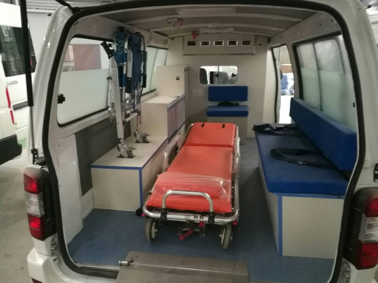 1、便攜折疊式擔架1件;2、醫藥柜1件;3、固定安裝氧氣瓶1只;4、輸液吊鉤2只;5、消毒燈1只;6、污物桶1只;7、單人座椅3只;8、長條貯藏柜帶2人位軟座墊、軟靠背和安全帶1套;9、中隔斷帶鋁合金滑窗1套;10、前頂裝全藍警燈警報器1套;11、照明燈2只;12、逆變器1只;13、電源插座1組;14、中門上車扶手;15、后門上車踏板;16、醫用耐磨塑膠地板革;17、貼救護十字標志;廠家銷售熱線:13872882215.