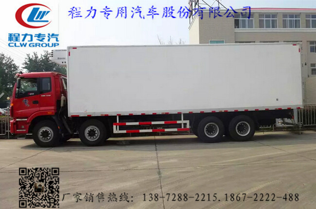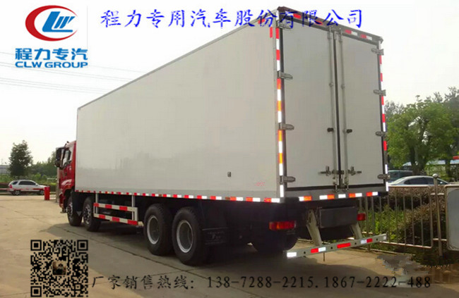 2.上裝配置:冷藏廂內部有效尺寸:(ETX)長9.42米×寬2.4米×高2.5米,(GTL)長9.48米×寬2.4米×高2.5米,冷藏廂體采用內外玻璃鋼,隨客戶要求采用槽鋼焊接骨架或者玻璃纖維超輕高強度骨架,填充8cm聚氨酯保溫層,不銹鋼包角,不銹鋼門框,不銹鋼門鎖件,防滑花紋鋁底板,配后雙開門,車廂右側可以加開側門,選裝可升降液壓尾板,-5,-10度或者-18度國產非獨立制冷機組,可選裝合資或美國原裝進口的獨立機組。