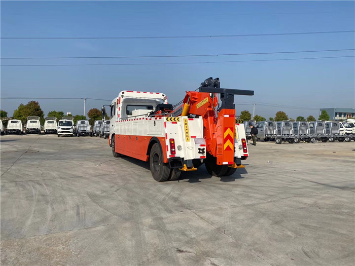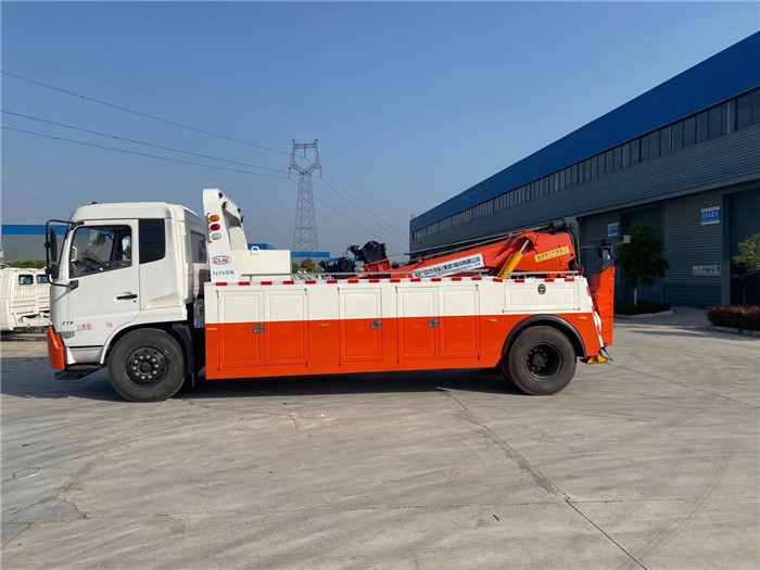 東風天錦單橋拖吊聯體一拖一清障車配置: 采用康明斯210馬力,八檔箱,斷氣剎,空調,ABS,電動玻璃,中控門鎖,900R20鋼絲胎。 10噸上裝,聯體式上裝,二節式六邊型吊臂,三節托臂,分體式車廂,雙側聯動操作裝置,兩個八噸液壓卷揚,三十五米鋼絲繩,直徑16MM,配四套鋼叉,一套拖叉套,一套鋼板吊耳拖叉,一套抱胎裝置,輔助燈一套,輔助氣管總成一套。 整車出具:底盤合格證、整車合格證、全國統一機動車發票、隨車工具、車輛質保手冊、全國服務站點目錄等。湖北程力國六東風天錦托吊連體清障車程力威牌CLW5188TQZD6型清障車多方位圖片價格: