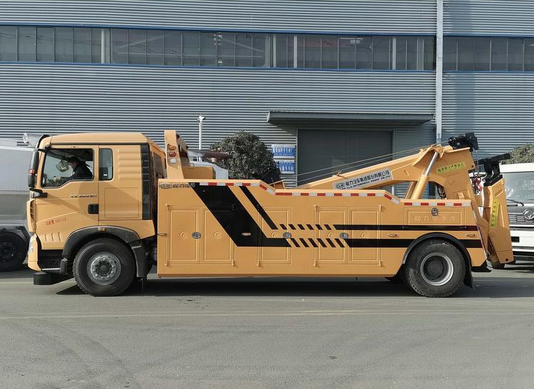 湖北程力國六豪沃單橋托吊連體清障車程力威牌CLW5183TQZZ6型清障車廠家配置: 16噸國六重汽豪沃單橋拖吊聯體清障車:底盤型號ZZ5207V6017F1,HW76新款前臉駕駛室,國六MC9.3B-60發動機,HW19710變速箱+HW70法蘭式取力器,HR7前軸,ST16自調臂單后橋(鼓式制動),HR7前軕(盤式制動);雙層車架(8+5/300),ZF8198方向機,前后標準版多片簧(10/9+6);低位杠,帶ABS,標準版排氣系統,無氣候包,12.00R20,速比3.93;選裝冷暖空調,選裝300L油箱,選裝整車前下防護,選裝中國重汽智能版; 湖北程力國六豪沃單橋托吊連體清障車上裝配置:10噸、12噸后托臂,雙8噸絞盤,聯體式上裝,進口閥,二節式六邊型吊臂,三節托臂,分體式車廂,電泳漆,雙側聯動操作裝置,三十五米鋼絲繩,直徑16mm,配置四套鋼叉,二套拖叉座,一套鋼板吊耳拖叉,輔助氣管總成一套,工程警燈一套。 湖北程力國六豪沃單橋托吊連體清障車程力威牌CLW5183TQZZ6型清障車圖片價格:
