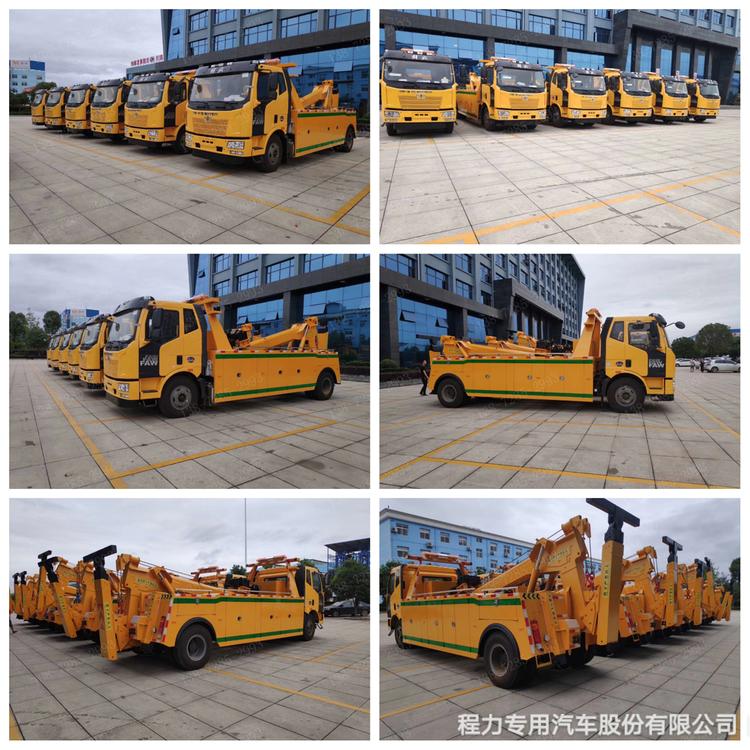 湖北程力國六解放J6托吊連體清障車程力威牌CLW5180TQZC6型清障車廠家配置: 湖北程力國六解放J6托吊連體清障車底盤配置:解放J6平頭排半豪華駕駛室,可選大柴220馬力或240馬力發(fā)動(dòng)機(jī),6檔變速箱,280雙層車架,加厚高強(qiáng)度前保險(xiǎn)杠,前霧燈,可調(diào)水晶大燈,廣角后視鏡,前路面視鏡,10.00R20原鋼絲胎,原廠空調(diào),ABS。 湖北程力國六解放J6托吊連體清障車專用配置:可選8T16D上裝或10T16D聯(lián)體式上裝,進(jìn)口閥,二節(jié)式六邊型吊臂,三節(jié)托臂,分體式車廂,雙側(cè)聯(lián)動(dòng)操作裝置,兩個(gè)8噸液壓卷揚(yáng),35米鋼絲繩,,直徑16mm,配四套鋼叉,一套拖叉套,一套鋼板吊耳拖叉,一套抱胎裝置,一個(gè)長排工程警燈,輔助燈一套,輔助氣管總成一套。 湖北程力國六解放J6托吊連體清障車程力威牌CLW5180TQZC6型清障車圖片價(jià)格: