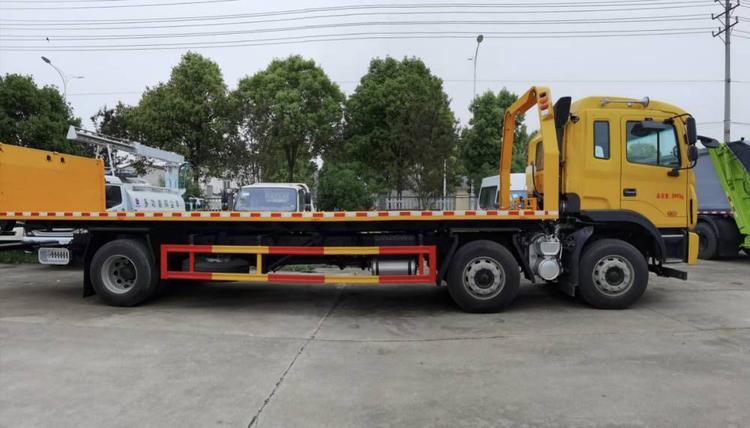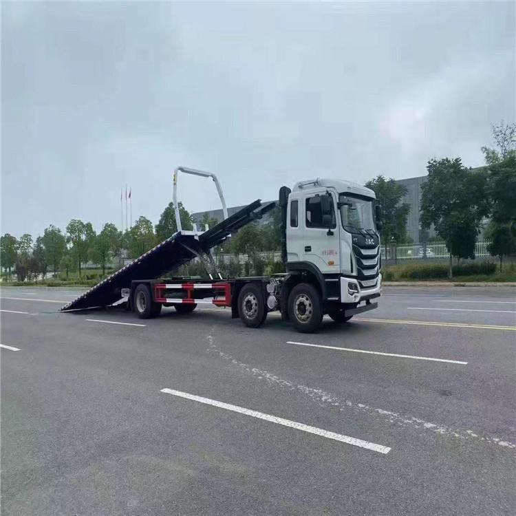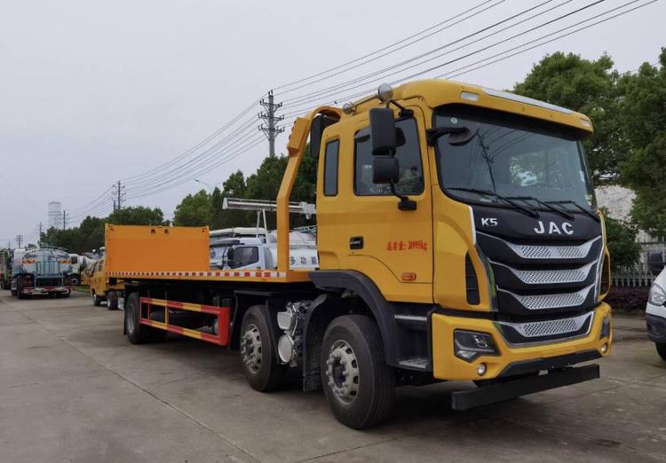 江淮K5小三軸,錫柴290馬力,法士特8檔變速箱 11.00輪胎,280大梁,空調(diào),ABS,行駛記錄儀,電動玻璃升降,電動翻轉(zhuǎn),氣囊座椅。 12噸上裝,12噸后托臂,重心低,受力平均,平板尺寸9.6米,平板寬2.55米,10噸液壓卷揚。 湖北程力國六江淮K5小三軸平板清障車(平板長度9.6米)程力牌CL5250TQZH6ZQ型清障車圖片價格: