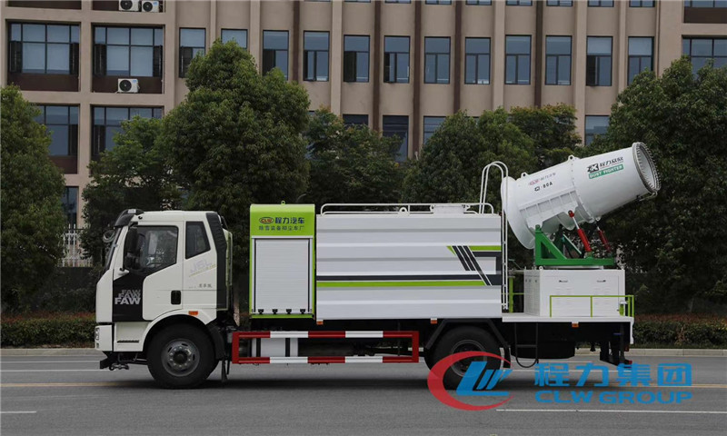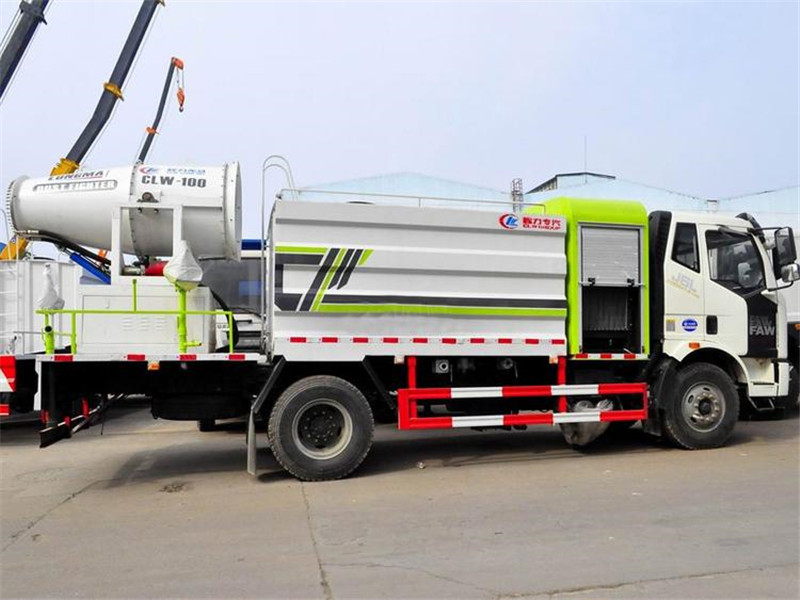 湖北程力國六解放J6單橋多功能抑塵車 解放J6單橋12方環(huán)保霧炮車,解放多功能抑塵車基本配置:總質量18噸,搭載大柴220馬力國六發(fā)動機,陜齒8檔變速箱(帶高低檔),10噸后橋,10.00鋼絲胎(6+1),電動玻璃、中控鎖、原裝空調,國六同類高配車型,價格給力!罐體容積12立方,前沖后灑主管道氣動閥控制,罐體內環(huán)氧玻璃鱗片防腐處理(質保兩年),可匹配60米70米80米專用車載霧炮機(浙江新界全國聯(lián)保不銹鋼多級離心泵、日本三菱PLC控制、日本和泉繼電器、日本歐姆龍行程開關;國內品牌南京玉兔,德力西控開、交流接觸器)。同類產品更高配置,有力保障設備運轉,延長使用壽命 湖北程力國六解放J6單橋多功能抑塵車上裝:前沖、后灑(主管道均采用氣動閥駕駛室自動操作控制)、側噴、高炮、加大工作平臺,前置卷簾門消音發(fā)電機倉,中置加大容量方型水箱,罐體滿載容積12立方(罐內采用環(huán)氧玻璃鱗片防腐處理質保兩年)、使用壽命更長,新型罐體、美觀大方,環(huán)保、免征齊全。 湖北程力國六解放J6單橋多功能抑塵車霧炮配置:霧炮射程從60米到120米,可隨意選擇,射程不同,價格不同,霧炮自帶柴油發(fā)電機組,標配100米以內遙控裝置,可360度遙控旋轉,達到全方位大面積精準噴霧,經環(huán)保部門測試,霧炮車可以將空氣中的PM10濃度降低20%左右,該車負載的大型霧炮噴霧流量平均每分鐘50-150升水,同樣10噸水,在霧霾天氣可以進行液霧降塵,將漂浮在空氣中的污染顆粒物迅速逼降地面,達到凈化空氣的效果。 湖北程力國六解放J6多功能抑塵車(方罐)程力威牌CLW5180TDYC6型多功能抑塵車圖片價格: